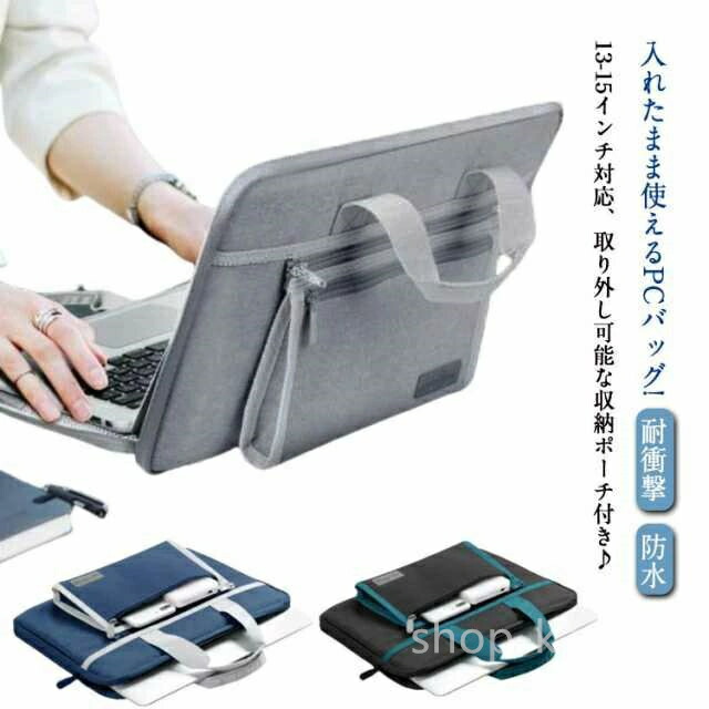 男 シンプル 収納ポーチ付き 取り外し可能 手提げ 防水 パソコンバッグ 入れたまま使える パソコンケース 耐衝撃