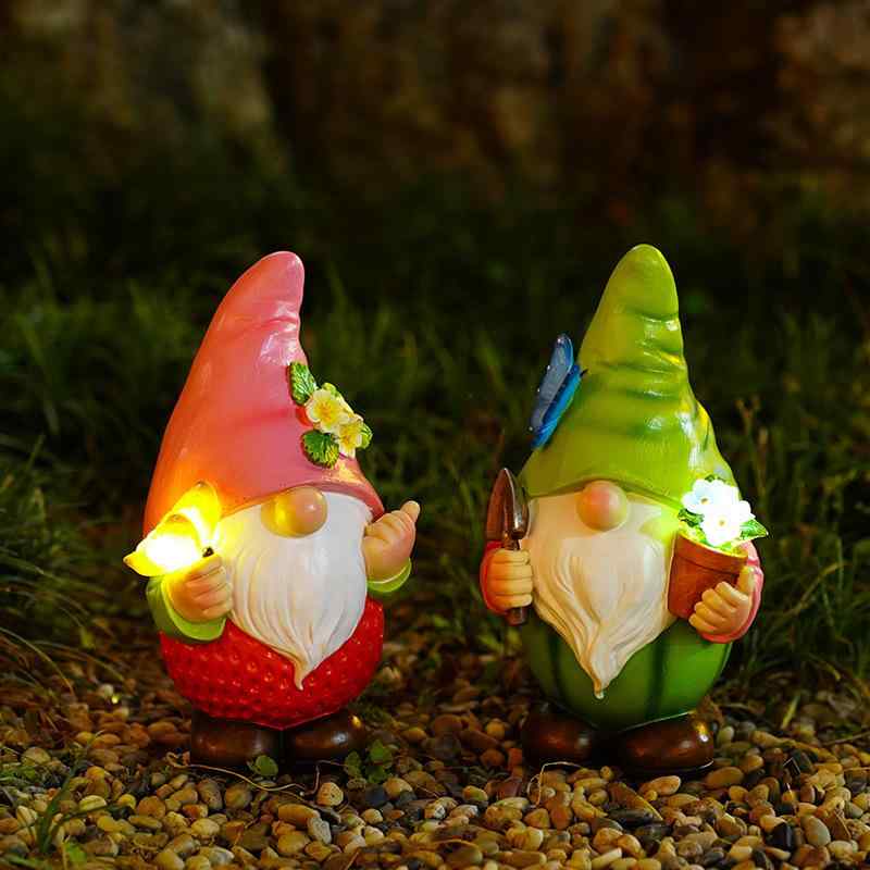ガーデンオーナメント ノーム ドワーフ 妖精 小人 ソーラーライト 太陽光発電 LED照明 樹脂製 レジン 屋外 庭園 置物 デコレーション メルヘン 田園風 オブジェ