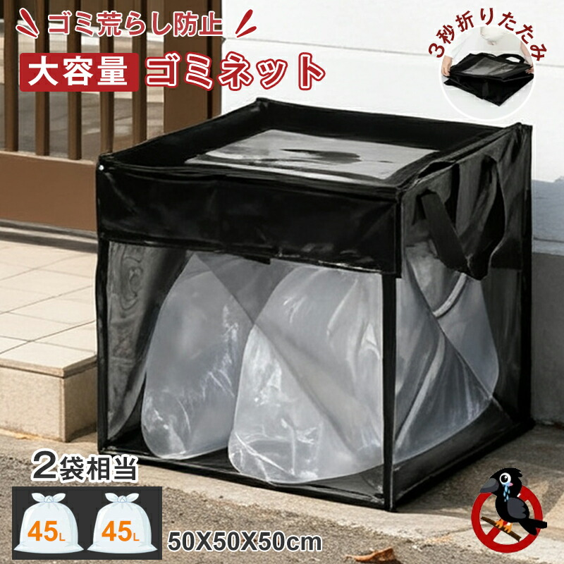ゴミ荒らしを防ぐ!高強度ナイロン網&三面フタで屋外でも安心。折りたたみ収納で清潔に管理