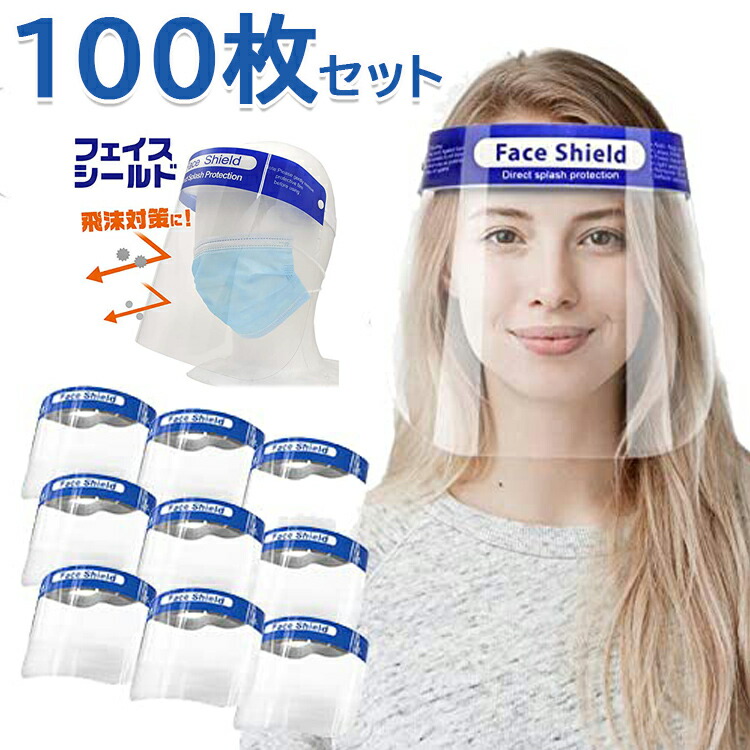 【100枚セット】フェイスシールド フェイスガード 大人用 フェイスカバー 接客業 コンビニ 介護施設 簡易式 男女兼用 水洗い 100個 透明シールド 防塵 目立たない 飛沫防止 軽量