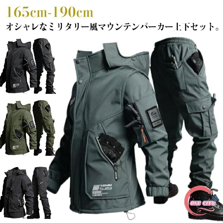 撥水 マウンテンパーカー 上下セット メンズ 厚手 裏起毛 防寒 防風 防水 作業服 セットアップ ウインドブレーカー 防寒着 上下セット カーゴパンツ 長ズボン ジ