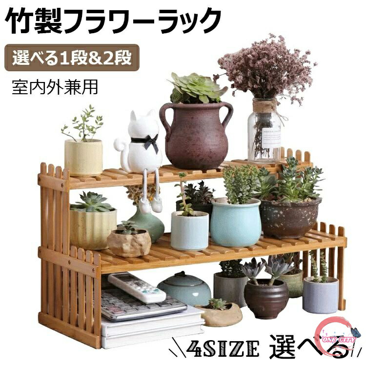 フラワーラック フラワースタンド 2段 天然竹製 多肉植物 棚 花台 花棚 園芸 竹園 植物小屋 鉢植え 盆栽棚 収納小屋 ベランダ 屋外 屋内 大容量 頑丈 原色 収納棚 組み立て式