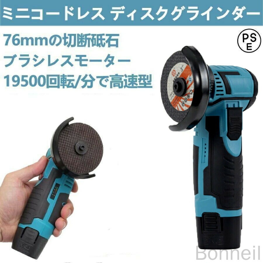 ディスクグラインダー充電式ミニコードレス型ハンドヘルド切断機軽量設計76mmディスク19500rpm超高速回転バッテリー1個付家庭用金属木工切断研磨研削作業用工具