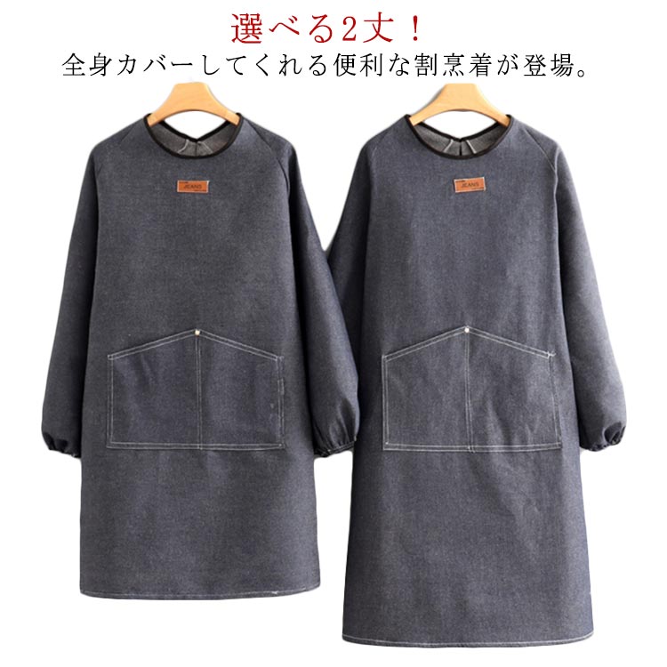 エプロン 割烹着 メンズ レディース かっぽう着 スモック 長袖エプロン デニムエプロン 防水 撥水 ワークエプロン 作業着 ロング丈 かっぽうぎ おしゃれ 無地 仕事用 ガーデニング 料理 ゆったり