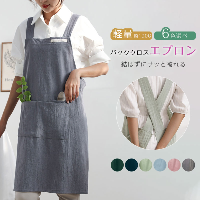 エプロンかぶるだけノーアイロンかぶるだけショート丈保育士バッククロス綿100被るだけナチュラルおしゃれポケット付きレディースカフェ美容院スタッフエプロンサロンユニフォームエプロンかわいい大きいサイズ