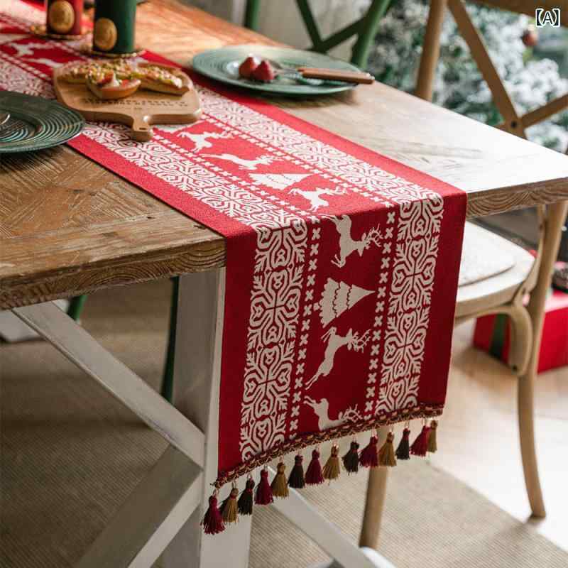 テーブルランナー クリスマス ホリデー 装飾 フリンジ 先染めジャカード織り アメリカンレトロ風 格子柄 細長い長方形 テーブルクロス テーブルカバー 混紡 ポリエステル リビング ダイニング 綿