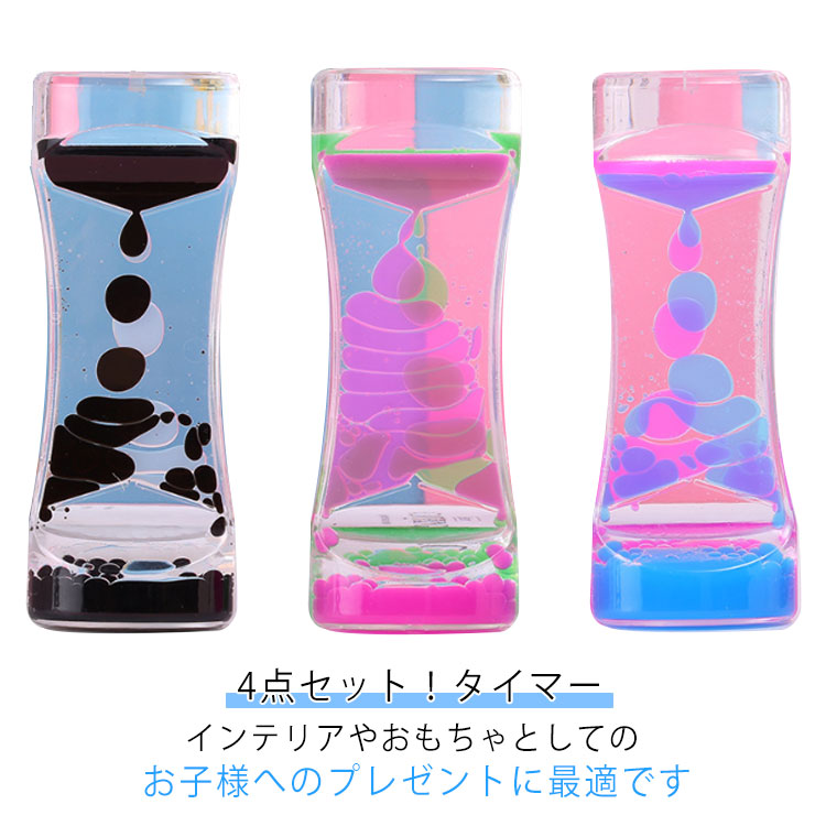 砂時計キットおしゃれ癒し4点セット タイマー置物雑貨オイル砂時計おもちゃ仕事カラフル卓上水族館書斎スパイラル型時間管理液体オイルオフィスリビング贈り物誕生日クリスマスプレゼントギフト4点セット タイマ