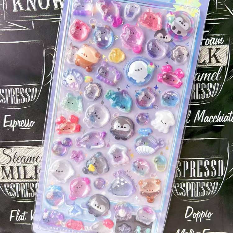 ぷくぷくシール 可愛い ご褒美シール かわいいシール 立体 シール ぷっくり 泡ステッカー 装飾用 ごほうびシール DIY用 手帳 ステッカー アルバム キラキラ 子供 デコシール スマホケース飾り