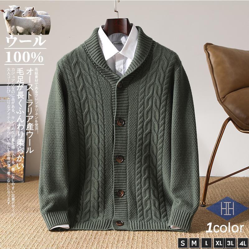 ウール100% カーディガン メンズ ケーブル編み 長袖 紳士 ニットジャケット おしゃれ 暖かい 防寒 防寒着 プレゼント ニット セーター あったか