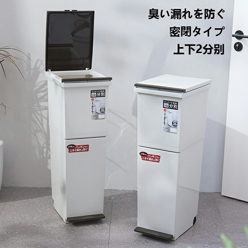 ゴミ箱 ごみ箱 ダストボックス おしゃれ 分別 2分別 スリム 38リットル キッチン リビング ペダル プッシュ 足踏み 新生活