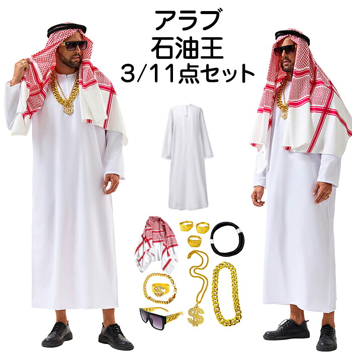 ハロウィン 衣装 石油王 コスプレ 変装 アラブ コス 男性 女性 大人 大富豪 王様 面白い おもしろ メンズ パーティー キャラクター halloween ローブ 舞台 コスチ イベント