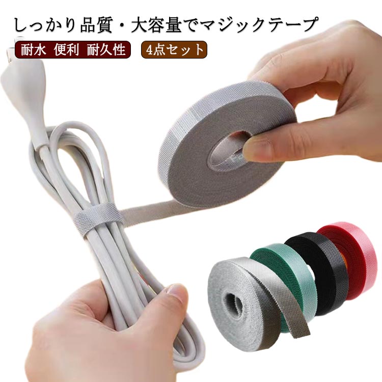 面ファスナー 両面テープ 貼付テープ 粘着 長さ3m 幅1.2cm 4点セット オス メス 超強力 網戸 工作 ズレ防止 強力 接着 接着剤 幅広 タイプ DIY 業務用 ホワイト 黒 白 ブラック