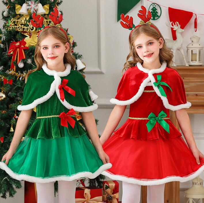 子供クリスマスワンピース マント+ワンピース 2点セット 女の子 オールインワンリボン Aライン レッド 可愛い クリスマスドレス サンタクロース 変装 イベント クリスマスコスチューム キッズ 仮装