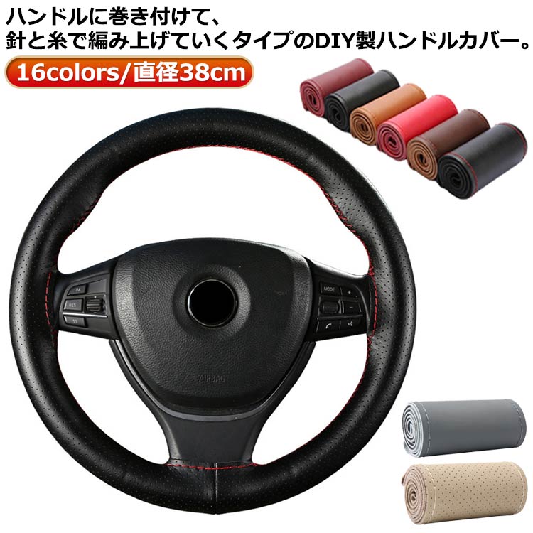 軽自動車 牛革 手縫い ハンドルカバー ステアリングカバー 編み込み 自動車用 通気 編み上げタイプ ハンドル 滑り止め 汎用 汚れ防止 カバー