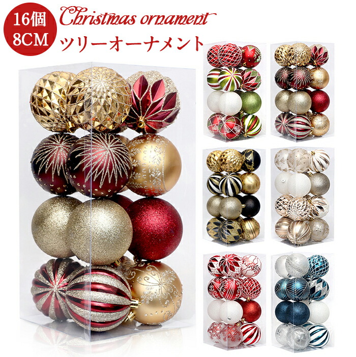 オーナメントセット オーナメントボール 8cm 飾り 16点入り クリスマスツリー オーナメント セット ボール クリスマス おしゃれ 豪華 北欧 カラーボール 正月飾り 飾り付け 部屋 室外 装飾