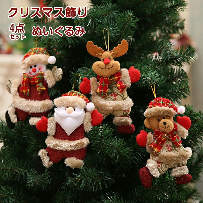 クリスマスオーナメント 4個入り クリスマス飾り ぬいぐるみ クリスマスツリー装飾 サンタ 人形 ペンダント クリスマス雑貨 可愛い サンタクロース トナカイ クマ クリスマスデコレーション 雪だるま