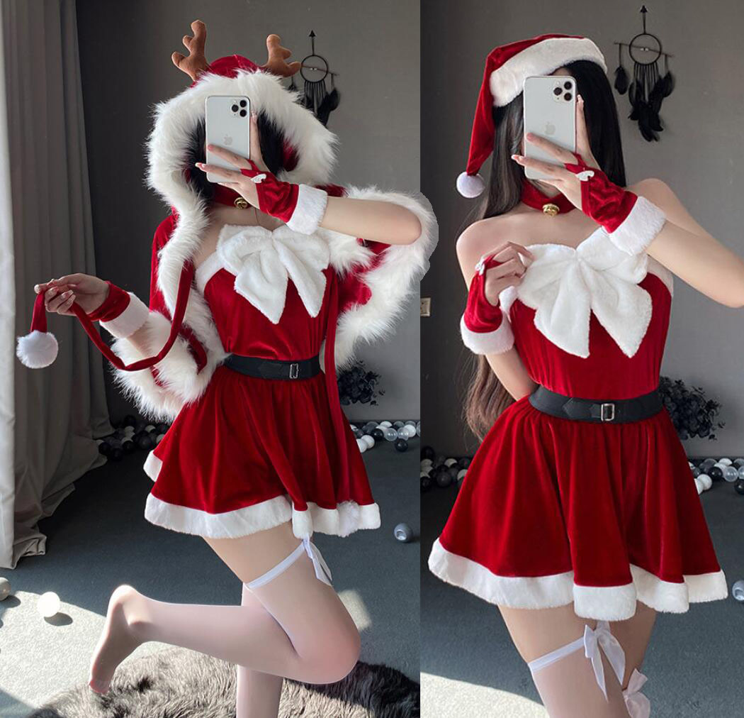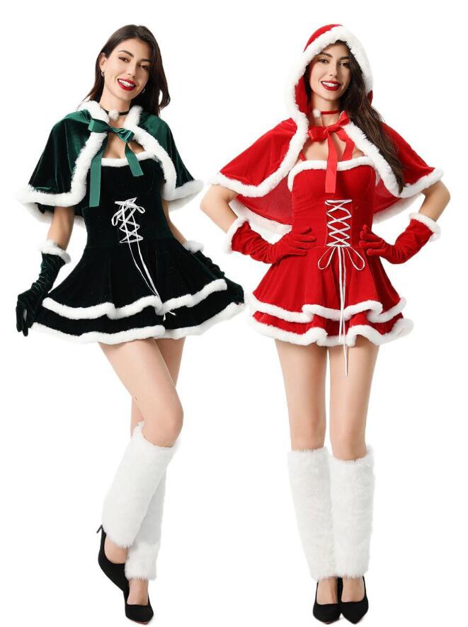クリスマス衣装 レディース ワンピース 帽子 マント 単品 セット クリスマス コスプレ ハロウィン 仮装 サンタクロース コスチューム プレゼント 新年会 セクシー クリスマスドレス 演 パーティー