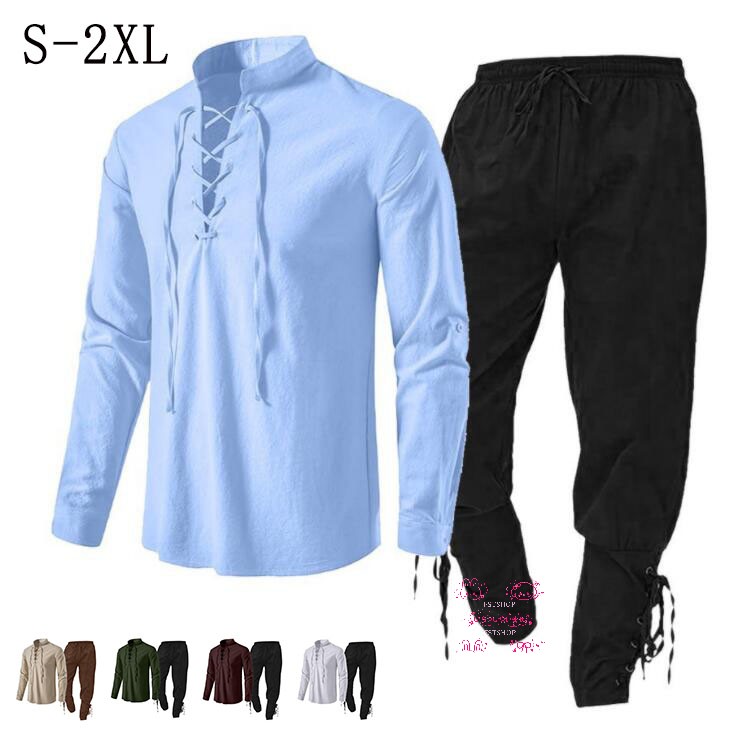 男性用コスプレ衣装 上下セット中世ヨーロッパ ハロウィン メンズ衣装2点セット男性用トップス シャツ パンツ海賊 皇室 演出服 王子様 演劇 新劇セットアップ ズボン ゴシック上下セット 舞台 王族服