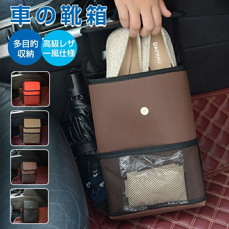 車の靴箱 車用靴箱オーガナイザー レザー 自動車用シューズオーガナイザー 靴置き場 車載用の靴収納 車の靴ボックス 車の靴の収納ボックス 車ガナイザー 自動車 汎用 大容量 車用多機能シューズボックス