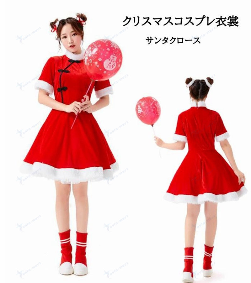 中国風クリスマス衣裳 ミニサンタクロースコスプレ衣装 ワンピース レディース 大人コスチューム クリスマス衣装 サンタさんコスプレ クリスマスパーティー 舞台衣装 変装 仮装 女装 舞台劇